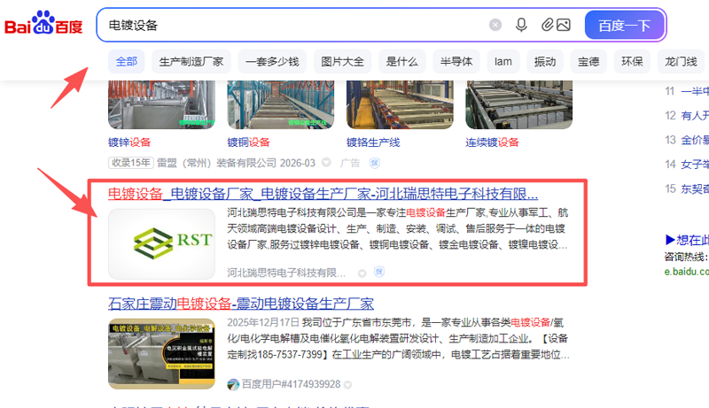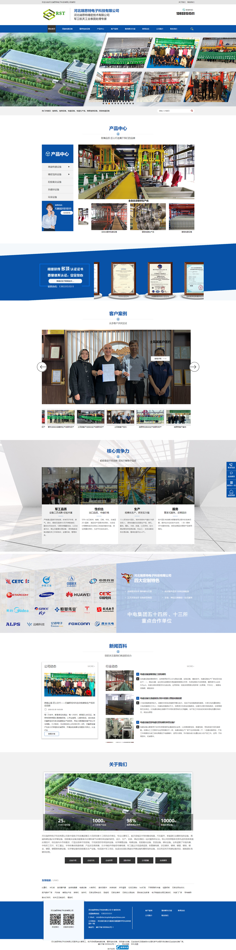 河北瑞思特电子科技有限公司成立于2008年,是中国电子科技集团第五十四所和第十三所的合作单位,专业从事军工、航天领域及半导体集成电路、汽车配件、新能源行业精密蚀刻设备、高端电镀设备/化学镀设备、阳极氧化设备及配套废水处理和废气治理环保设备的研发、设计、生产、安装、调试及售后一站式服务的企业。我公司持续吸收世界先进的各种表面处理技术,结合国内外市场需求,打造出各种不同领域、不同类型的专用蚀刻设备,化学镀锡设备,电镀设备、阳极氧化设备、发蓝设备、磷化设备。业务涵盖了中国兵器,中电军工芯片,军工雷达,半导体集成电路电镀,产品涉及微波器,北斗导航件传输信号器电镀,军工雷达天线遥感遥测,助推器电镀,涉及镀锌,镀铜,镀镍,镀铬,镀金,镀银,镀锡等电镀设备、化学镀设备和阳极氧化生产设备。包括国外军工项目,如孟加拉部队高端化学镀设备和精密蚀刻设备,尼日利亚军方电镀设备项目,越南部队电镀项目等。